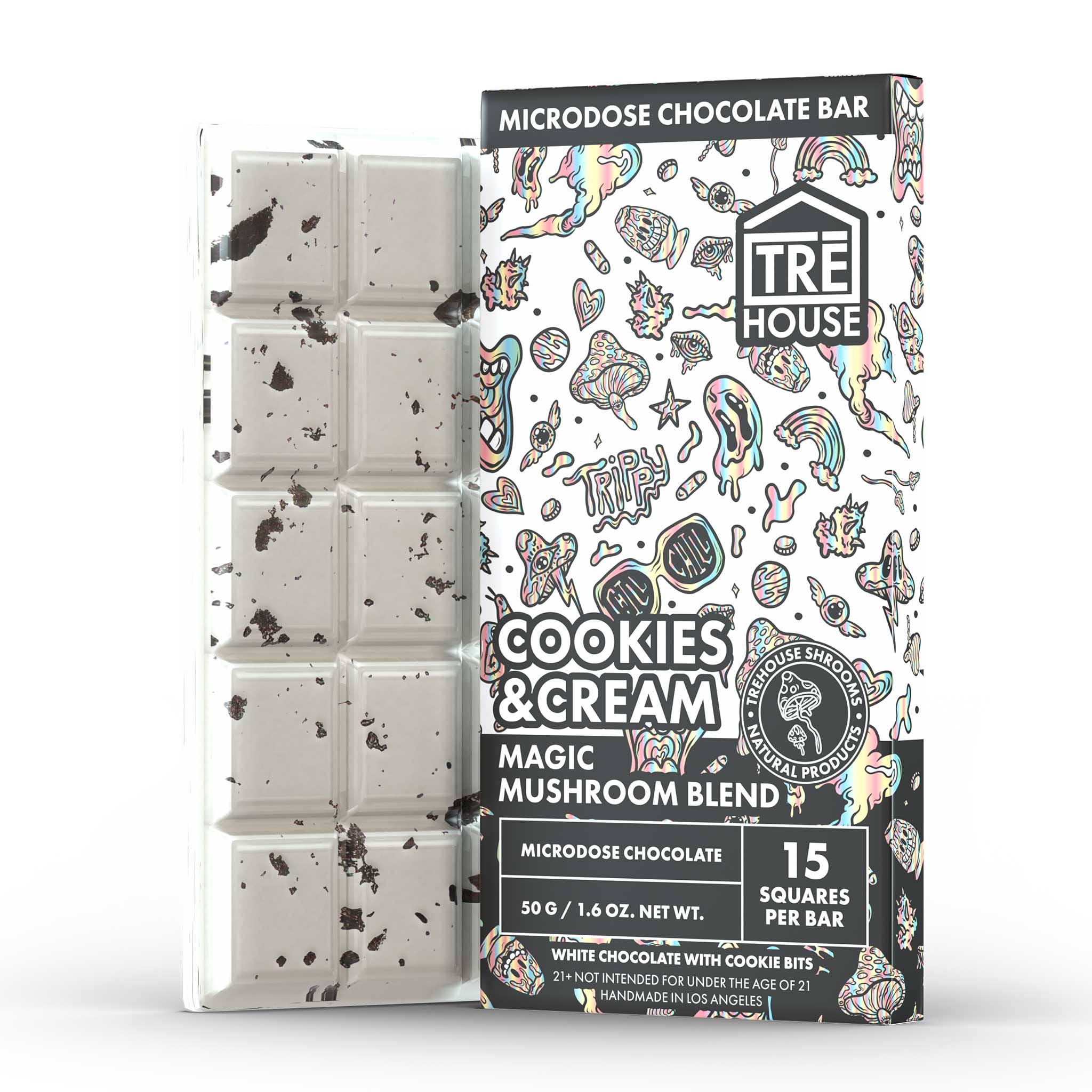 TRE House Magic Mushroom Chocolate Bar – Cookies & Cream – Mind-Expanding Edible (15 Squares)