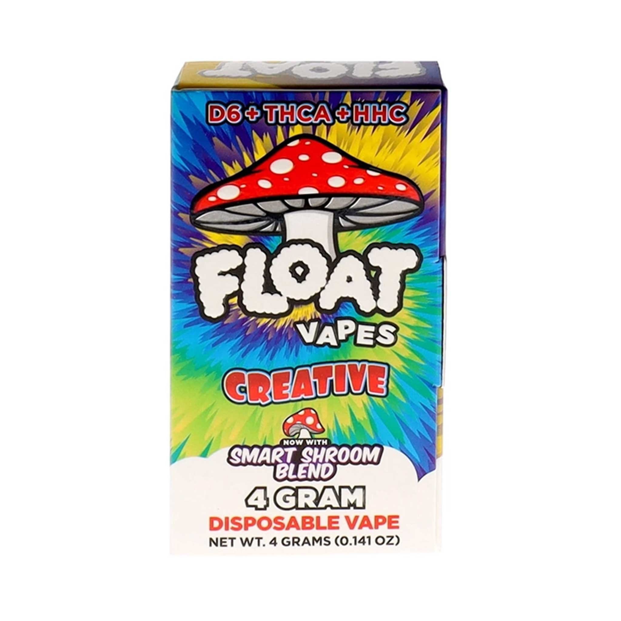 Elevate your imagination with the Float Creative Blend disposable vape. This 4‑gram device merges Delta‑6 THC, THCa, and HHC with the Smart Shrooms matrix—Lion’s Mane, Reishi, Turkey Tail, and Cordyceps—to spark focus, clarity, and creative flow. Packaged in a minimalist, box‑style unit, it features button activation and USB‑C recharge for seamless portability. Lab‑tested for consistent performance, Creative Blend is your go‑to for inspiration and mental acuity.